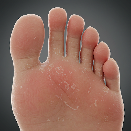 - 피부 각질화: 발바닥이나 발 측면이 하얗게 일어나고 각질이 생깁니다.
